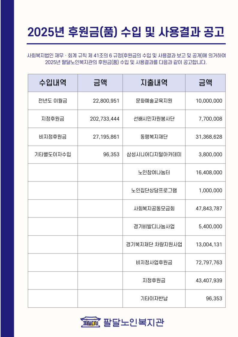 2025년 후원금(품) 수입 및 사용결과 공고