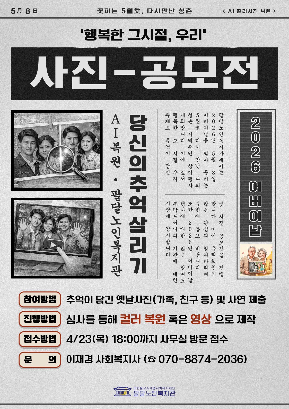 2026년 제9회 어버이날 기념행사 행복한 그시절, 우리 사진 공모전 진행