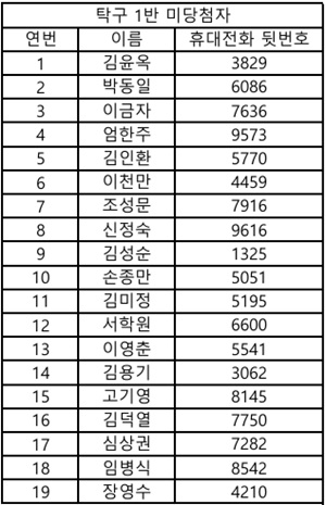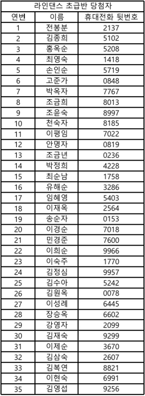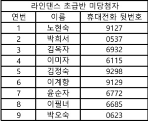 ▶추첨 프로그램 - 요가 1반, 라인댄스 초급반, 탁구 1반, 탁구 2반, 캘리그라피반, 서예반, 컴퓨터 초급반, 컴퓨터 중급반, 스마트폰 활용 1반, 스마트폰 활용 2반(총 10개) ▶수강료 결제 안내 - 전체 프로그램 집중 접수 기간 : 3월 16일(월)~20일(금 ) 09:00~16:00 * 추첨 프로그램 당첨 회원은 집중 접수 기간 내 수강료를 반드시 납부하셔야 하며, 미납시 수강이 제한됩니다. - 장소 : 1층 안내데스크 - 1층 사무실 앞에서 프로그램 신청서를 작성한 후, 결제하실 카드와 회원카드를 지참하여 안내데스크로 방문해주시기 바랍니다. ▶기타 안내사항 - 추첨 프로그램 당첨 결과는 3/13(화) 10:00에 문자로 발송해드렸습니다. * 문자 수신이 안 된 경우에는 1층 사무실로 방문 및 문의해주시길 바랍니다. - 추첨 프로그램 미당첨자는 자동 대기번호가 부여됩니다. - 대기의 경우 당첨자 중 수강 철회로 인해 공석이 발생할 경우 순번에 따라 수강 접수가 가능합니다. - 프로그램 추첨 과정은 기관 유튜브 채널에서 확인하실 수 있습니다. ※ 팔달노인복지관 공식 유튜브 링크: ▶문의: 문화복지팀 평생교육 담당자(070-8874-2027) ![]() ![]() ![]() ![]() ![]() ![]() ![]() ![]() ![]() ![]() ![]() ![]() ![]() |