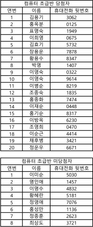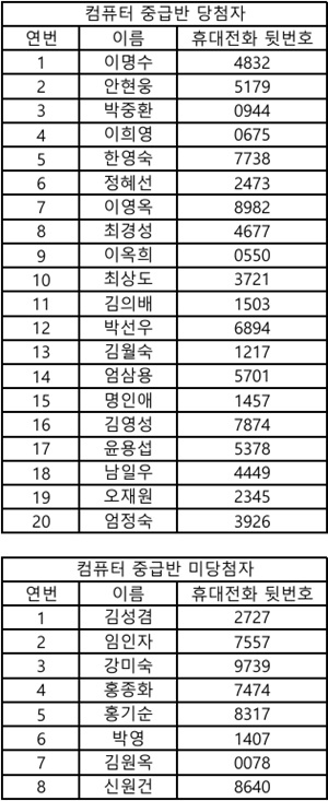 | 제목 | 2026년 2분기 평생교육프로그램 추첨 결과 | ||